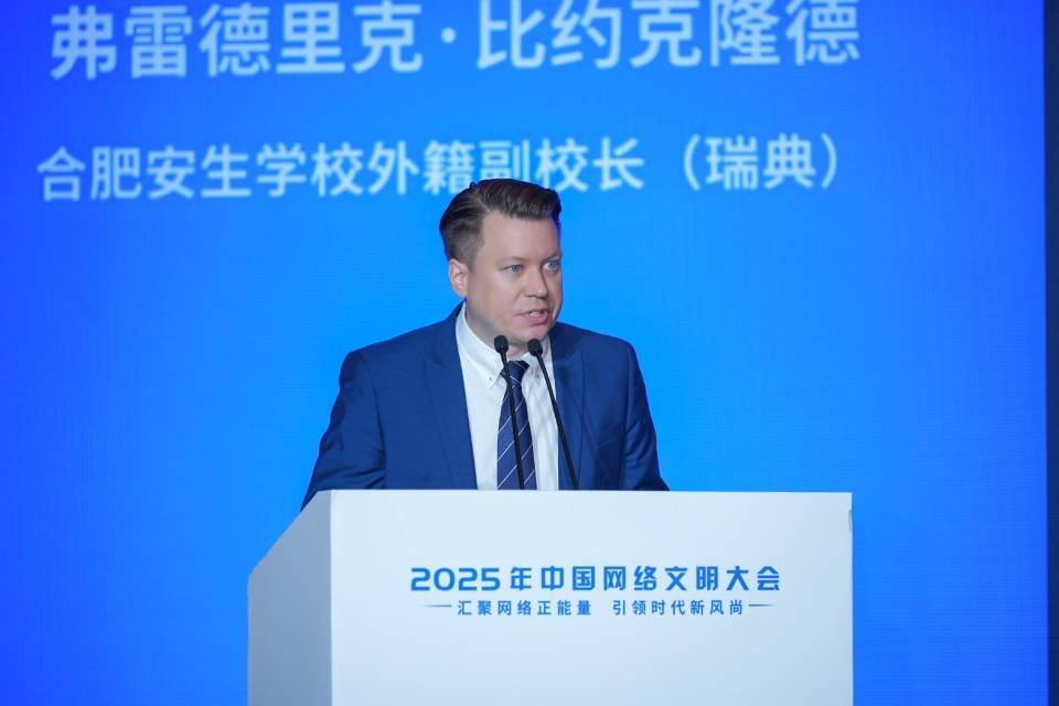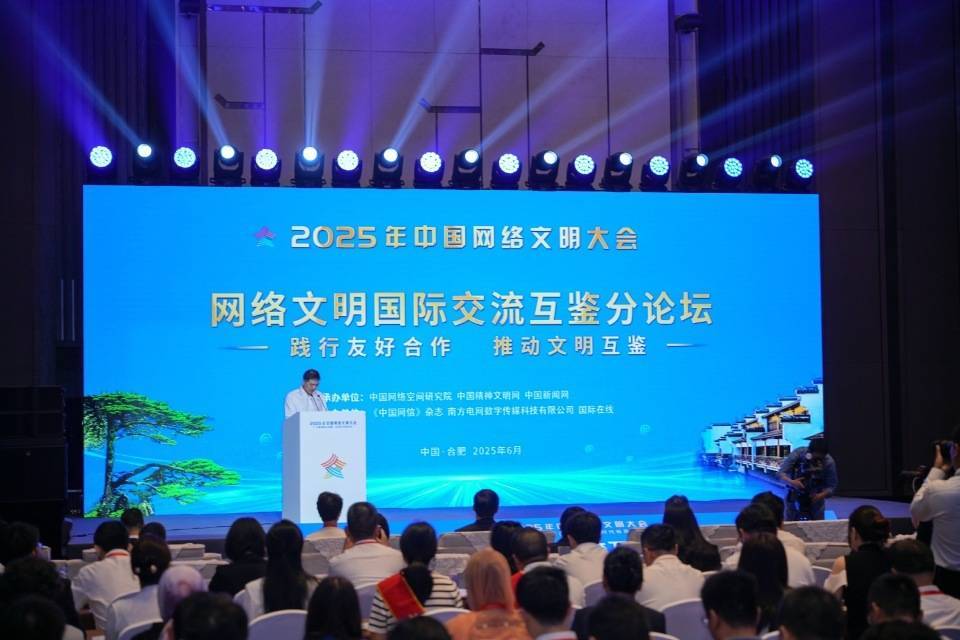 国际在线报道(记者 梁生文):6月11日,2025年中国网络文明大会网络文明国际交流互鉴分论坛在安徽合肥举行。分论坛以“践行友好合作 推动文明互鉴”为主题,旨在促进中外文明的交流互鉴、广泛凝聚共识,为携手构建网络空间命运共同体、促进人类文明进步贡献力量。分论坛吸引来自中国、英国、瑞典、约旦、保加利亚和埃及等国的近100位嘉宾出席。中央网信办副主任、国家网信办副主任杨建文,安徽省政协副主席罗平出席分论坛并致辞。